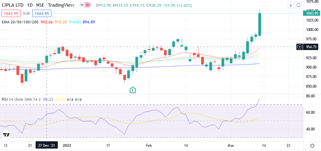 Cipla Share Price: 1043.95 (NSE)